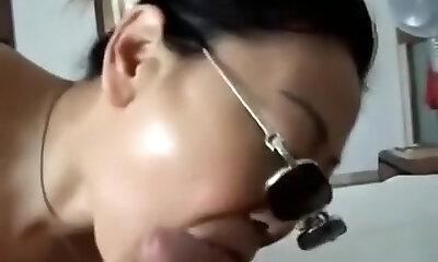 Titty fucking the dude with her mature Asian gigantic tits during their smash