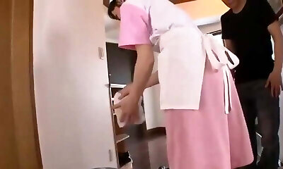 Japanese Mature Maid Gets Fucked by 2 room mates