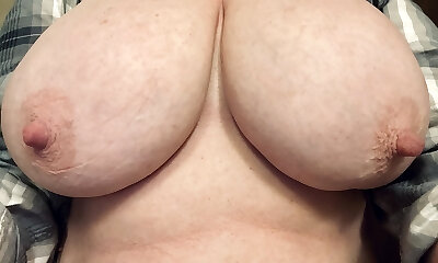 Sensitive yam-sized nipples on an American MILF