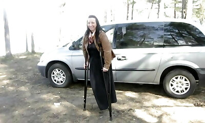 Gorgeous ass fat masturbating Cougar in leather skirt outdoors